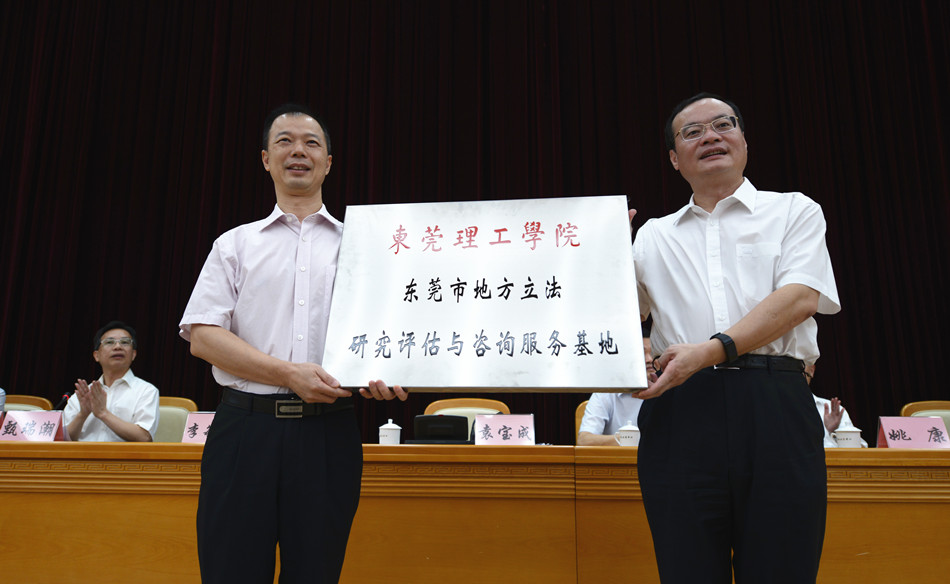 2015年8月10日,东莞市委副书记、市长袁宝成在东莞市立法工作第一次会议上向东莞市地方立法研究评估与咨询服务基地授牌